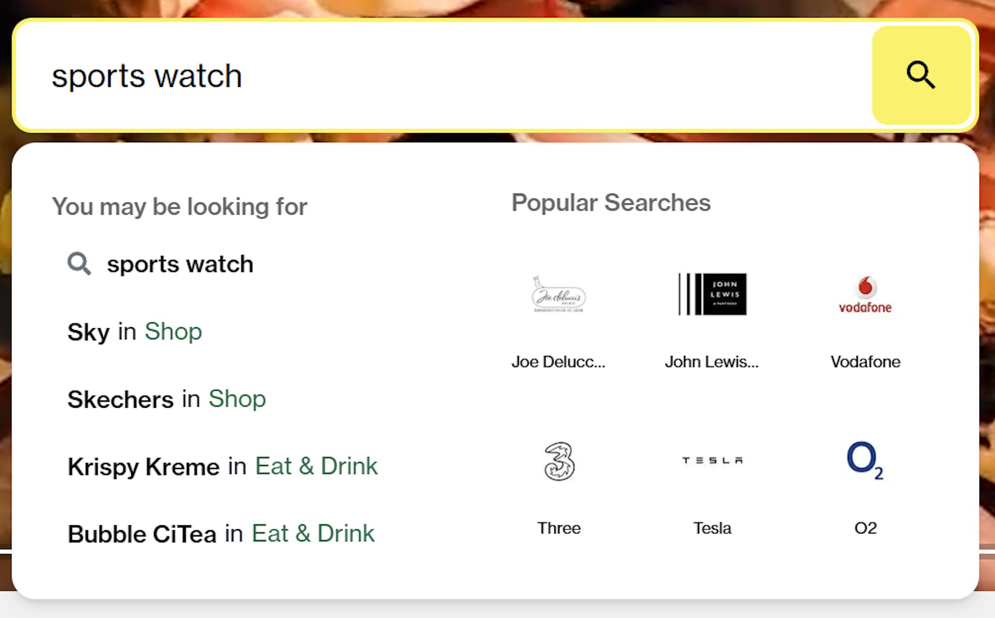 The new search layer introduced AI tagging across the retailer's catalogue, which meant the system could now recognise category and intent terms rather than just brand names. Someone searching for "birthday dinner" would surface relevant restaurant options. Someone looking for "sports gear" would find the right retailers even if they didn't know any of them by name.