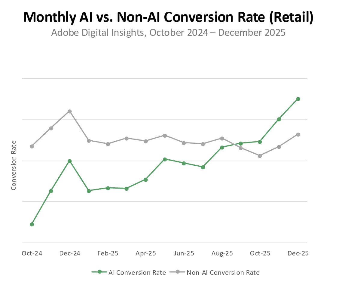 Image 2: AI vs. Non-AI Conversion Rates for Retail Websites, Source: Adobe AI Traffic Report