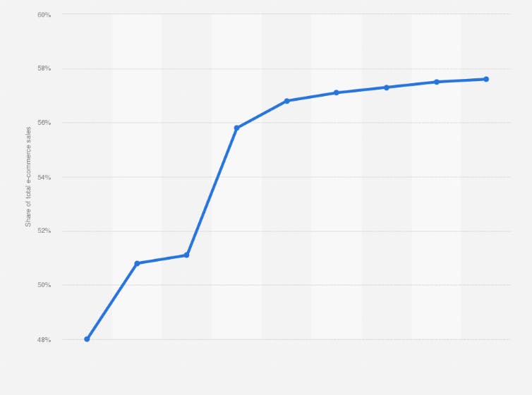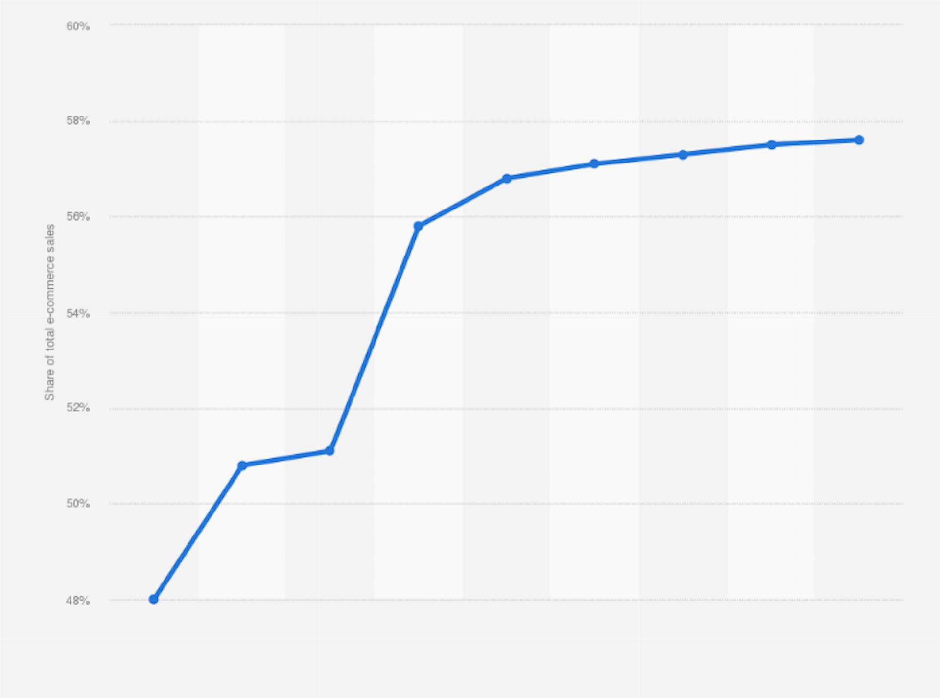 Mobile as percentage of total retail e-commerce sales in the United Kingdom (UK) from 2019 to 2027, Source: Statista