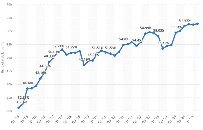 According to Statista, mobile devices made up 62.73% of global website traffic in the second quarter of 2025. Since your website visitor is most likely using their mobile device, the website can no longer be built with mobile as secondary.
